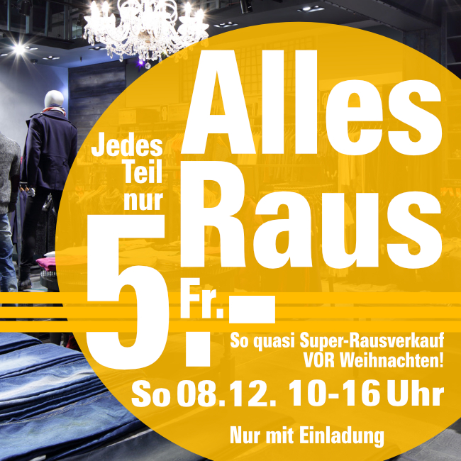AUS. und RAUS.Verkäufe BLITZ. und CRASH.Verkäufe ab Fr. 7.- pro Teil