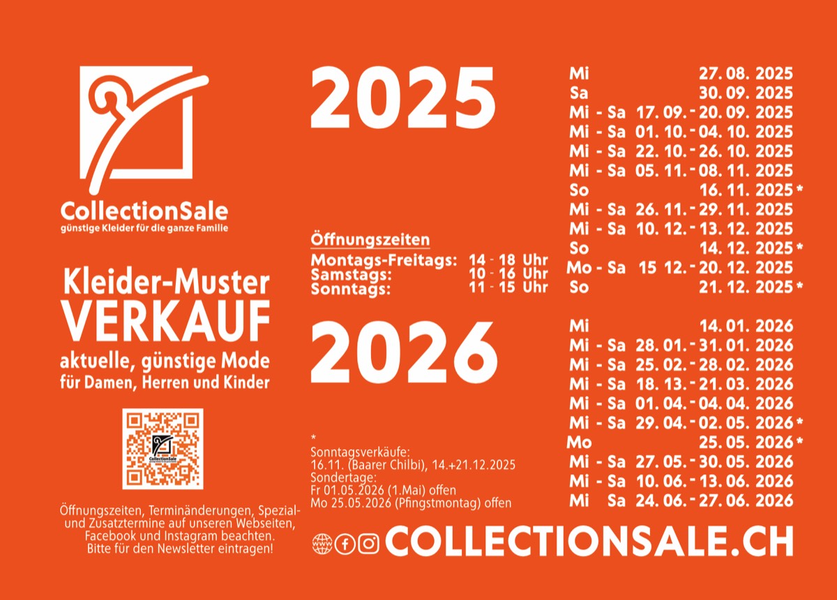 Seit dem 22.10.2025 sind wir mit einer neuen Pop-Up-Filiale in Aathal-Seegräben. Damit sind unsere günstigen Kleider für die ganze Familie direkt verfügbar - und wir freuen uns, nun auch das ganze Zürcher-Oberland und die weitere Umgebung mit unserem Angebot viel besser bedienen zu können!